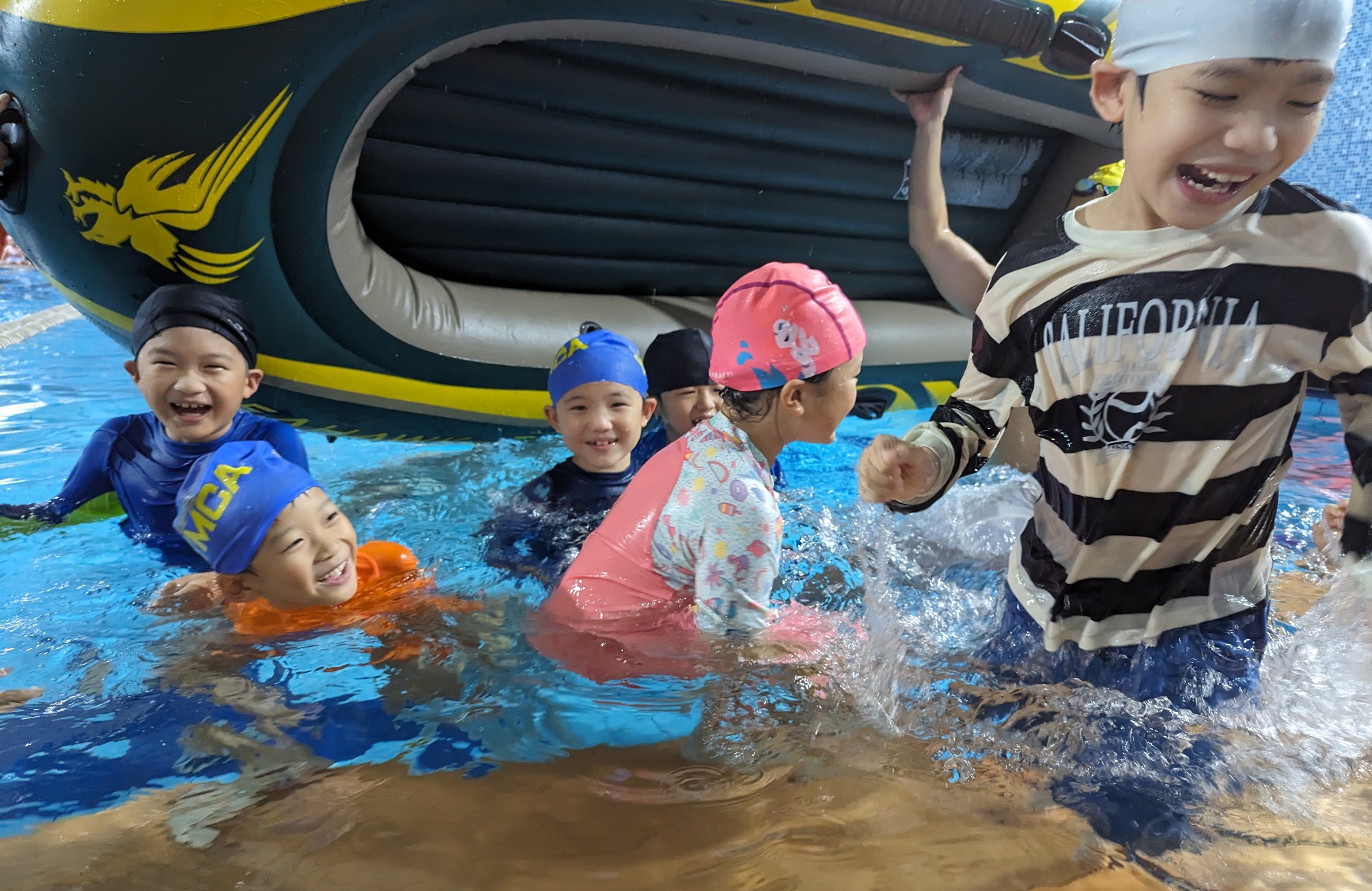 - 定期舉辦的水中安全課程,讓孩子除了具備游泳的基礎能力外,還擁有自救的能力