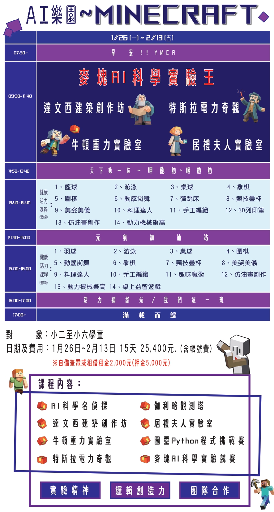 2026寒假活力營、科學營、體育營、麥塊營報名表單